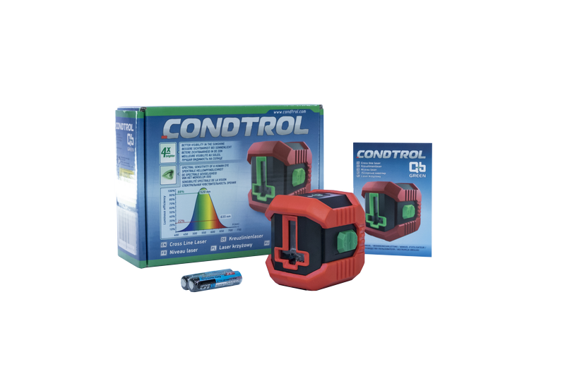 4. Лазерный нивелир CONDTROL QB Green от своего легендарного предшественника отличается цветом лазера. Яркий зеленый луч человеческий глаз видит в четыре раза ярче красного, что делает работу с разметкой более удобной.