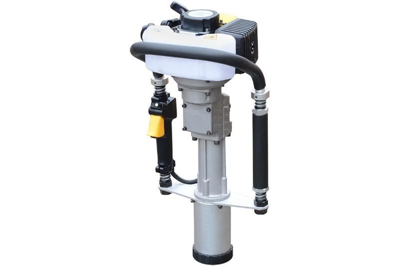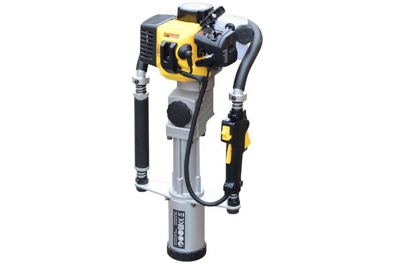 Копер с бензиновым двигателем для забивания свай диаметорм до 80 мм. Мощность двигателя инструмента — 0,9 кВт. Главным образом этот инструмент используется при строительстве ограждений. В отличии от электрического, он более мощный и не требует источника электропитания. По сравнению с пневматическими или гидравлическими, использование бензинового копера не требует дополнительной спецтехники. Значительно ниже по стоимости.