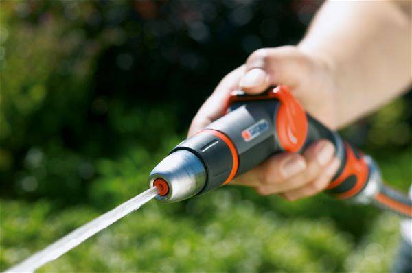 Эргономичный наконечник в современном исполнении для взыскательного пользователя выполнен из надежных металлических и пластиковых элементов, а также снабжен элементами из мягкого пластика, которые предотвращающего проскальзывание руки. Конструкция обеспечивает прочность и простоту в эксплуатации. Инструмент удобно держать в руке. Предусмотрена возможность плавной регулировки напора: от сильной струи до мелкодисперсного распыления, в зависимости от поставленной задачи. Управление наконечником для полива легко осуществляется с помощью одной руки. Напор воды плавно регулируется в соответствии с вашими требованиями, также возможна полная остановка подачи воды. Надежная предохранительная муфта привлекательной конструкции обеспечивает защиту корпуса наконечника. С помощью регулируемого наконечника для полива Premium GARDENA пользователь может без труда и с комфортом полить свой сад.