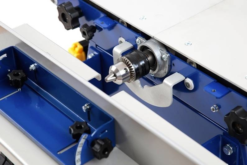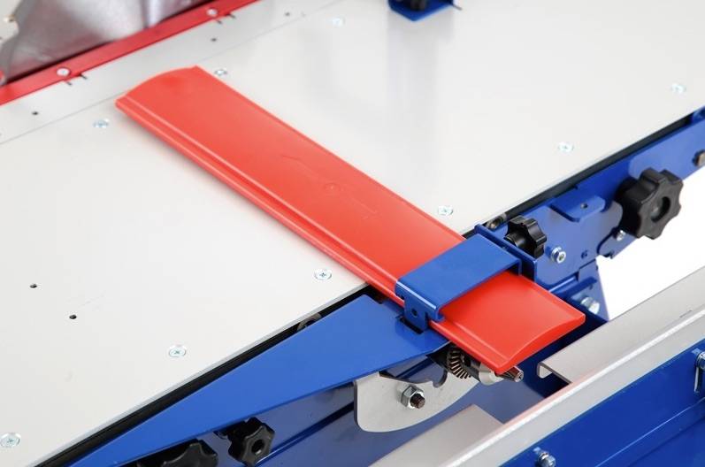 С целью улучшения условий эксплуатации и повышения точности обработки изменена конструкция приспособления для поперечной распиловки под углом. механическая блокировка строгальных столов и измененная конструкция крепления приспособления для поперечной распиловки под углом.