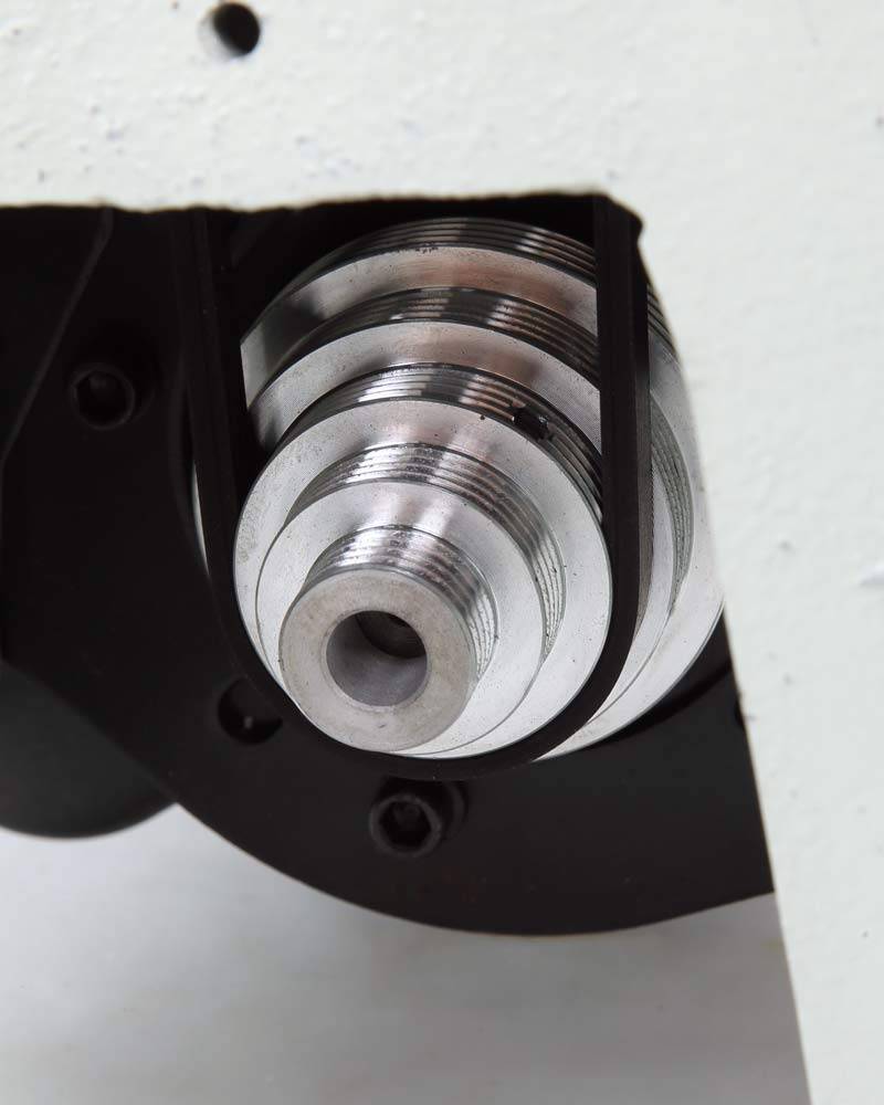Всего станок имеет пять положений ремня, которые соответствуют следующие скорости: 430/750/1150/1800/2800