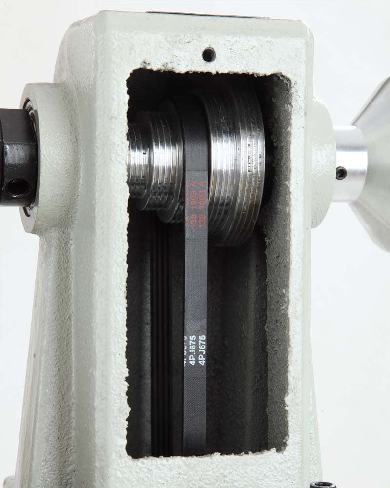 Простота смены скорости вращения шпинделя передней бабки, достаточно просто перекинуть приводной ремень на соответствующий шкив.
