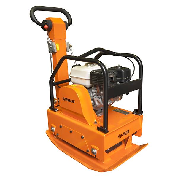 Как правило, функцией реверса оснащаются виброплиты массой от 120 кг. Главное преимущество реверсивных плит – возможность движения задним ходом без разворота плиты. Эта функция особенно актуальна при работе в траншеях и других узких местах, где развернуть тяжелую виброплиту нелегко. Реверсивные виброплиты подразделяются на плиты с механическим и гидравлическим реверсом. Механический реверс широко распространен на среднетяжелых виброплитах. Он более подвержен износу, чем гидравлический, при работе с ним обязательно нужно сбрасывать обороты двигателя до холостых перед переключением направления движения, иначе реверс может выйти из строя. Соответственно, при необходимости изменить направление движения плиты на противоположное, надо заранее сбросить газ, учитывая небольшой отрезок, который виброплита пройдет по инерции. Гидравлическим реверсом, как правило, укомплектовываются более тяжелые и дорогие виброплиты, в основном западных производителей. Он более надежен, и срок его службы дольше. Гидравлический реверс позволяет изменять направление движения плиты простым переводом рукоятки вперед и назад без необходимости сбрасывать обороты двигателя. Это позволяет осуществлять моментальный реверс, что удобно, например, когда виброплита вплотную подходит к препятствию. В ассортименте компании GROST в настоящий момент представлены две реверсивные виброплиты: разработанная нашим конструкторским отделом новая мощная модель PCR-4048CH с гидравлическим реверсом и уже зарекомендовавшая себя, улучшенная версия VH 160R с механическим реверсом.