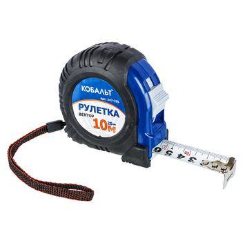 Рулетка КОБАЛЬТ Вектор 10м x 25мм обрезиненный корпус (мех.