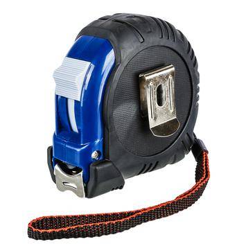 Рулетка КОБАЛЬТ Вектор служит для измерения поверхностей и предметов. Ударопрочный корпус из ABS-пластика имеет резиновое покрытие, благодаря чему рулетка надежно лежит в руке. Широкая стальная лента с крупными значениями шкалы облегчает считывание данных при слабом освещении. За счет надежного безрывкового механизма достигается плавный ход ленты.