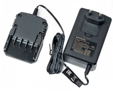 Зарядка-слайдер с силой тока 2А для аккумуляторов серии 40V. Оснащена защитой от перегрева и перезаряда и индикатором заряда. Время заряда батареи на 2Ач — 60 мин, на 4Ач — 120 мин.