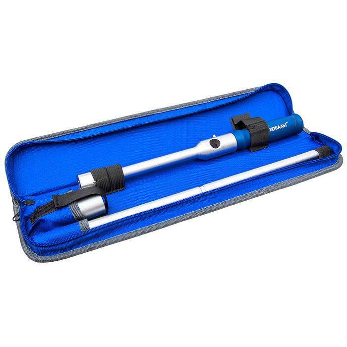 Ключ баллонный складной крестообразный КОБАЛЬТ 242-618, предназначен для завинчивания/отвинчивания колесных гаек и болтов автомобилей с размерами гайки 17, 19, 21, 23мм. Имеет присоединительный квадрат 1/2" для установки головок других размеров. Изготовлен из хром-ванадиевой стали (CrV). Ключ имеет вращающуюся двухкомпонентную рукоятку, для быстрого отвинчивания гаек. Съемный рычаг ключа быстро и удобно фиксируется кнопкой в 2-х положениях, образуя: крестообразный ключ с длиной рычага 200мм или Г-образный ключ с длиной рычага увеличенной до 400мм для получения высокого крутящего момента при страгивании сильно затянутых гаек.